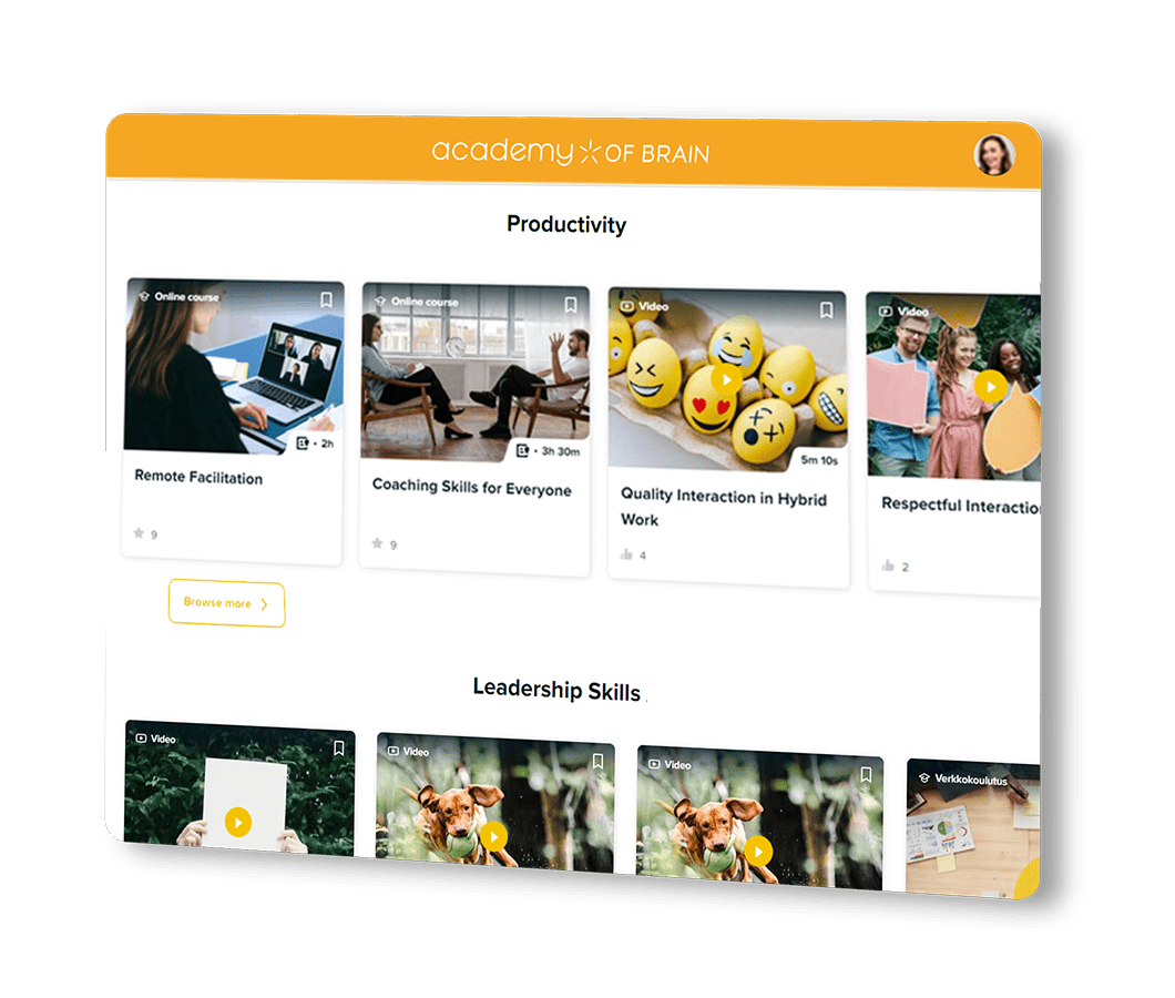 Academy of Brain library awaits. Dive into our tutorials and pick the content you want to add into your organization’s learning platform or intranet. All our content is based on microlearning.